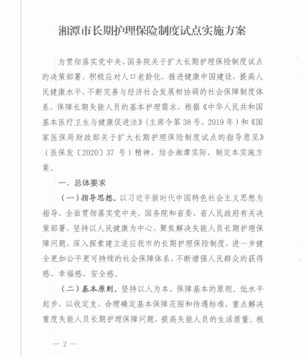 潭政辦發(fā)〔2020〕33號湘潭市人民政府辦公室關(guān)于印發(fā)《湘潭市長期護理保險制度試點實施方案》的通知